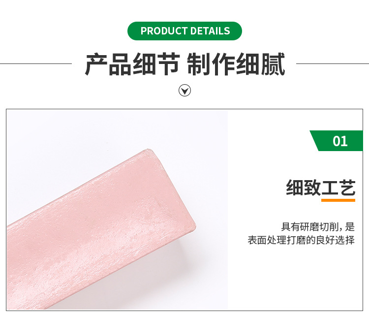 | 紫臘 V-5 | 桃紅 | 20 | 與麻輪配合使用專門針對(duì)國(guó)內(nèi)材質(zhì)較差的不銹鋼,不銹鐵,鋁等有著較好的切削率與亮度光澤 |